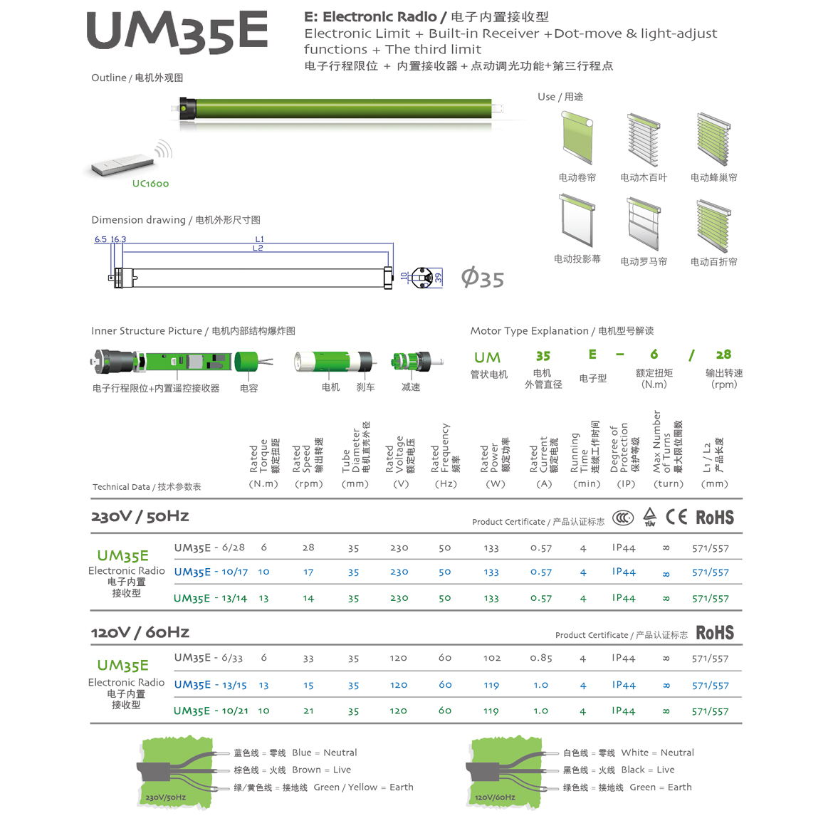 E:Electronic Radio/電子內(nèi)置接收型 Electronic Limit+Integrated radio control+jogging & tilt+The third limit/電子行程限位+內(nèi)置接收器+點動調(diào)光功能+第三行程點